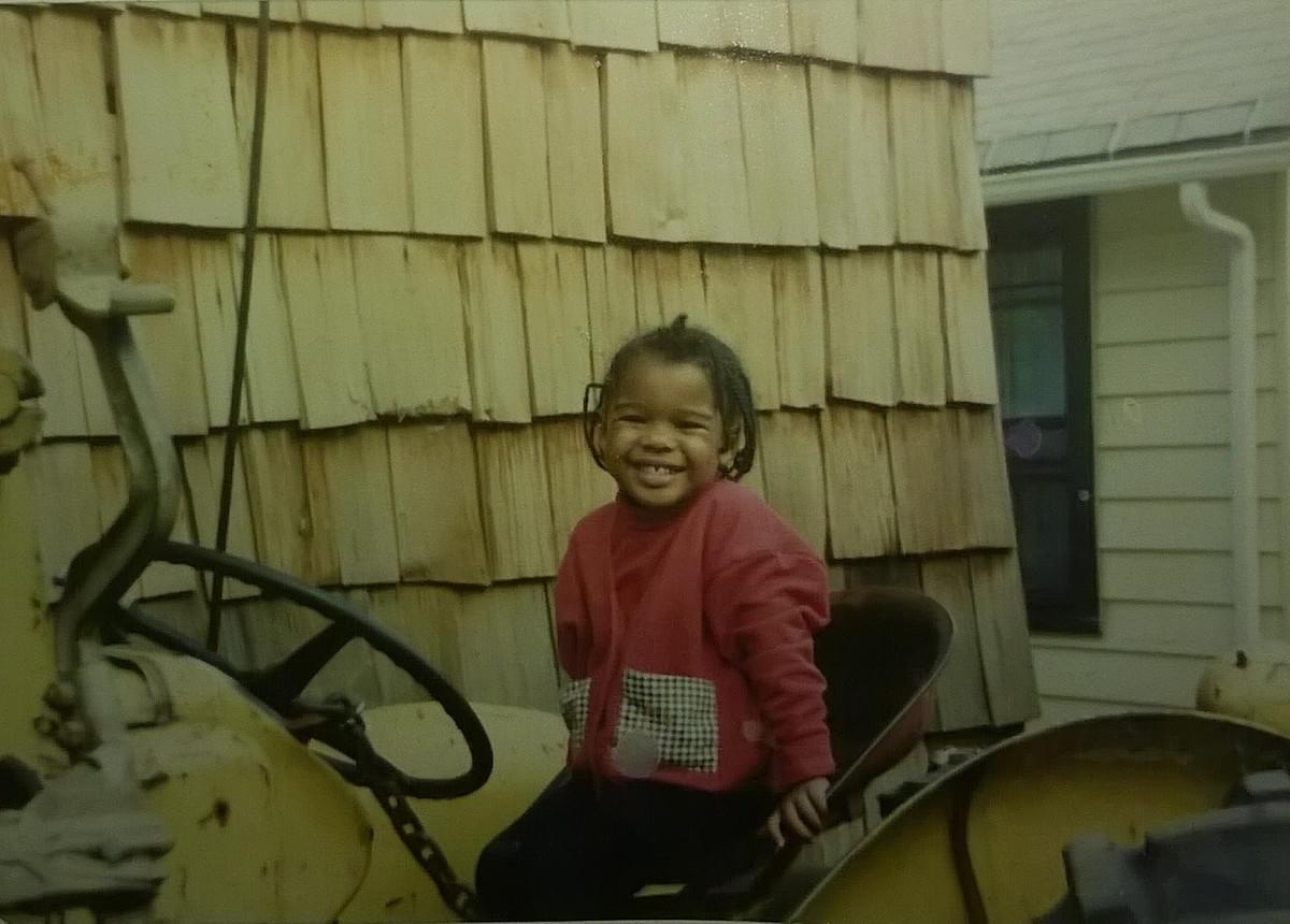 Above: Divinity as a child sitting on her grandfather's tractor in Wisconsin, USA.