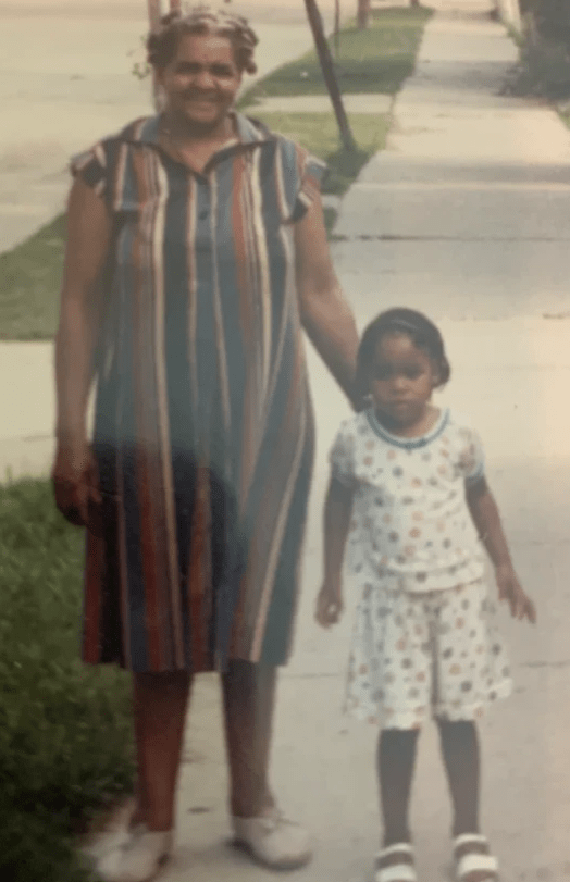 Below: Divinity as a child with her grandmother, Ruby Doris aka Big Mama, in front of the family home on Lockwood Avenue.